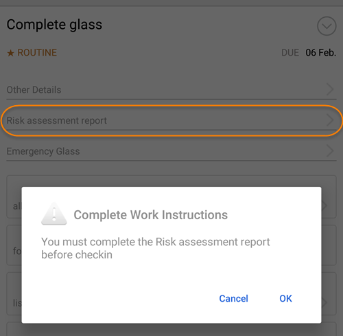 Workforce users are prompted on check-in to complete any mandatory pre-checkin work instructions.