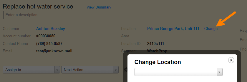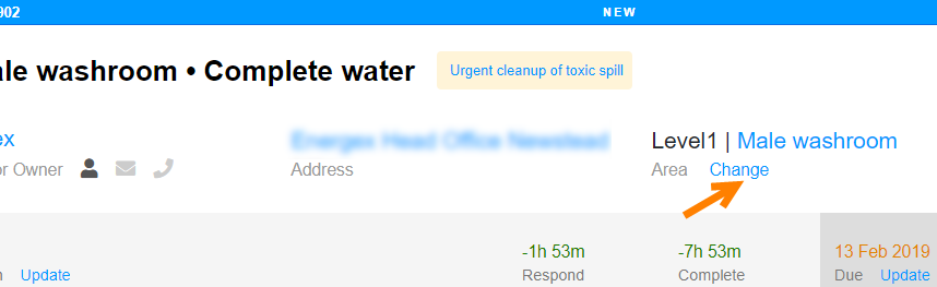 Reactive jobs sometimes miss important information like the area the job is for. Add an area to an existing location based reactive job or modify the current area on the job using the “Change” link beside the Area.