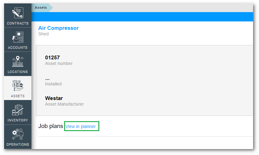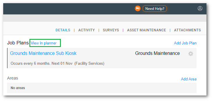 - AssetsWhen viewing Asset Details for a specific asset, a new option is available to click directly into the Planned Work Planner from the Job Plan section.
