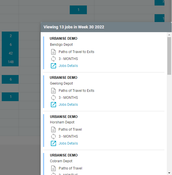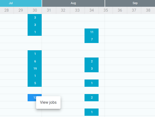 To view all the jobs for a specific week, right-click on the numbered square to view the jobs for the selected week.