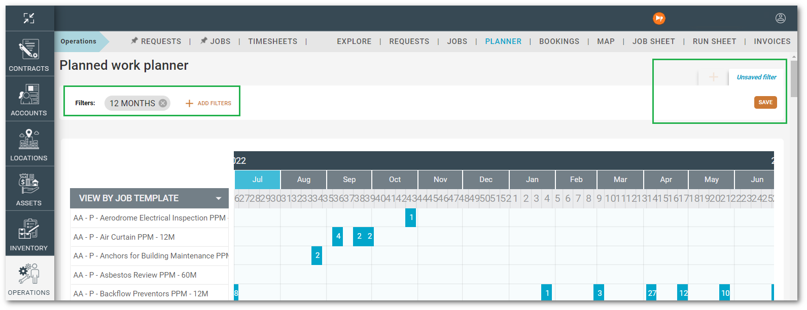 To get the most out of the Planned Work Planner, we recommend the use of saved filters. Follow these guidelines for creating saved filters: