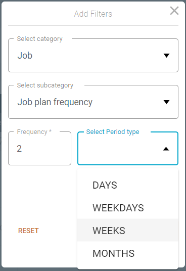 When selecting the period type of WEEKDAYS, the Frequency filter will be disabled.
