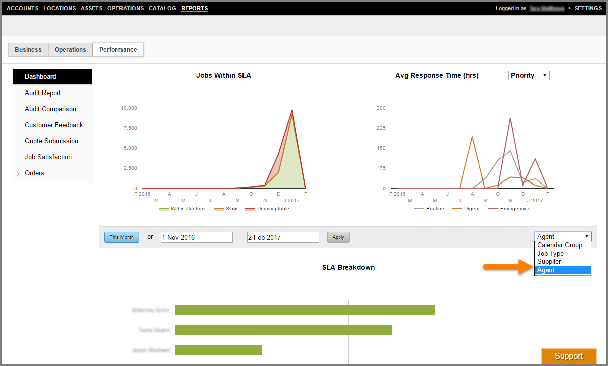 Filter your SLA Breakdown Report by Supplier or Agent: