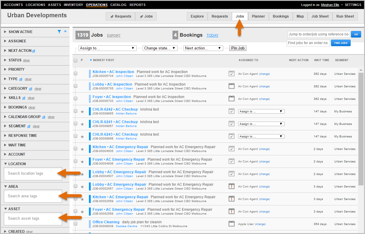 We now have the ability to filter the Job list by Location Tags, Area Tags and Asset Tags.