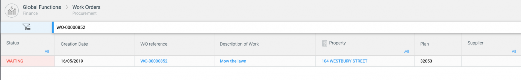 - A new column has been added to the list screen for “WO reference” that displays the work order number