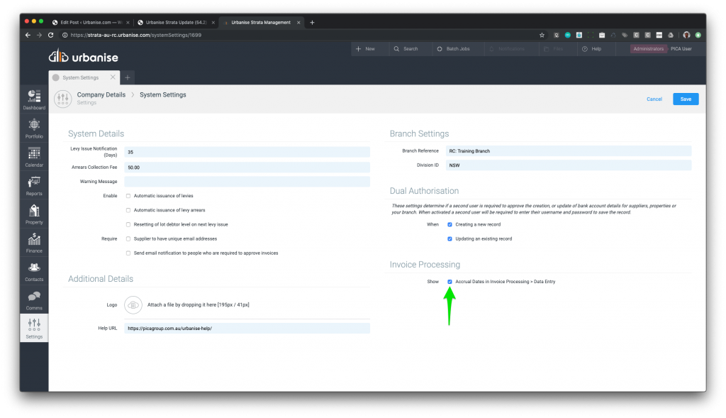 An option to show the “Accrue From” and “Accrue To” dates on the ‘data entry’ screen has also been implemented. Note that in order to see these fields in Invoice Processing you will need to first enable the option in “System Settings”. [PHX-4309]
