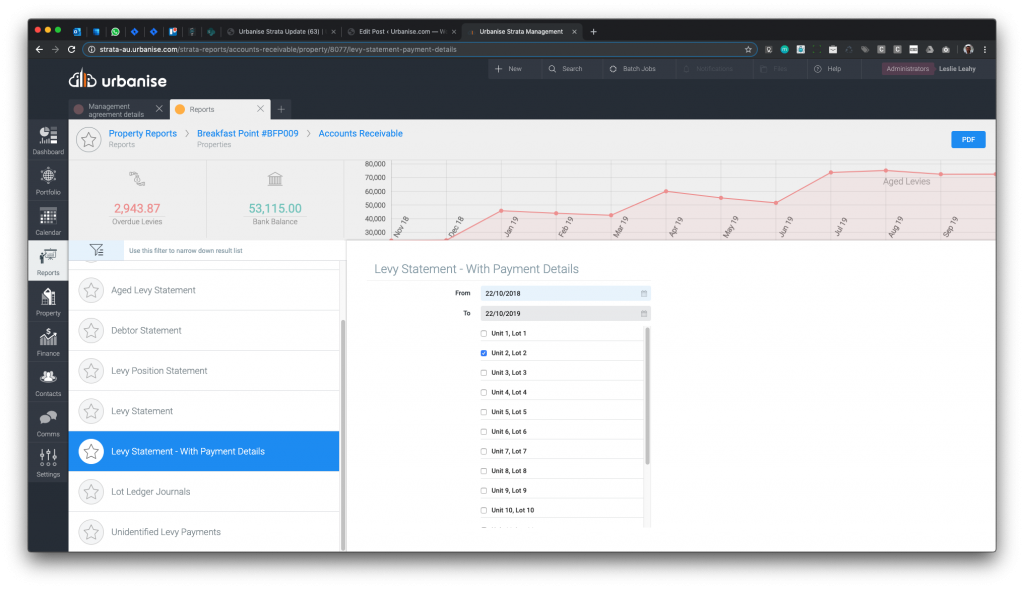 A new report has been added to the system. This allows you to print a levy statement that includes payment details – perfect for sending a levy notice to a new owner.