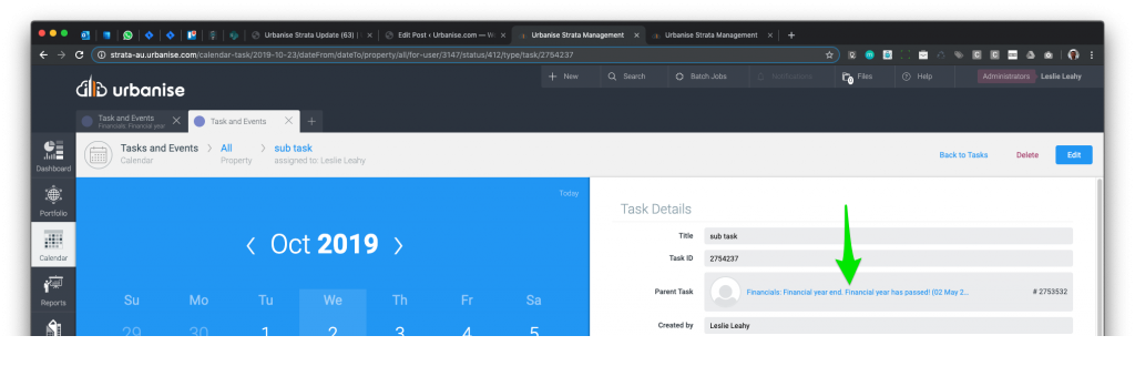 Parent tasks are now links that open the parent in a new tab. The parent task ID is also shown.